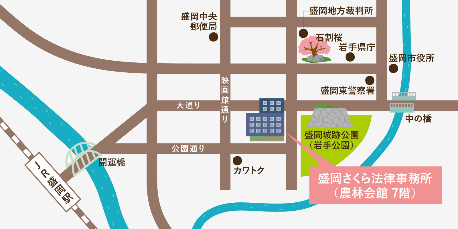 〒020-0024 岩手県盛岡市菜園一丁目3-6 農林会館7階